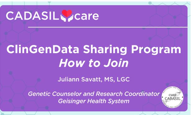 CADASIL Care webcasts have been made possible by generous donors, cureCADASIL volunteers, and a grant from Global Genes.